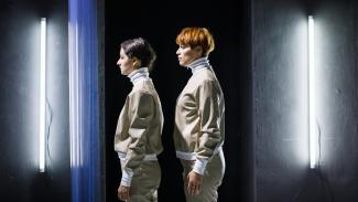 In order to produce computer chips, places with an absolute minimum of atmospheric pollution are required, so-called clean rooms. Factory work is monotonous, socially isolated and is conducted by following a strict production protocol. The chips manufactured there end up, amongst other places, in smartphone, the central gadgets of digitalization. These seem to have replaced the Fordist system of work. In its place, a self-realization imperative has emerged in which we learn to represent perfectly. The consequence of is that we study the best poses, which we then repeat monotonously over the course of our media-based everyday existences. Our own performance itself reverts back to being assembly line work. This devised work that exists at the intersections of performance and choreography with the central element of accompanying feeding-in of manufacturing protocols into the sequence of the production via in-ear headsets for the two performers. In a theatrical clean room, the audience observes two bodies at the melting point between human and machine. They approach, using uncanny mimetic attempts, the sterile smoothness of the digital network culture presented to them.